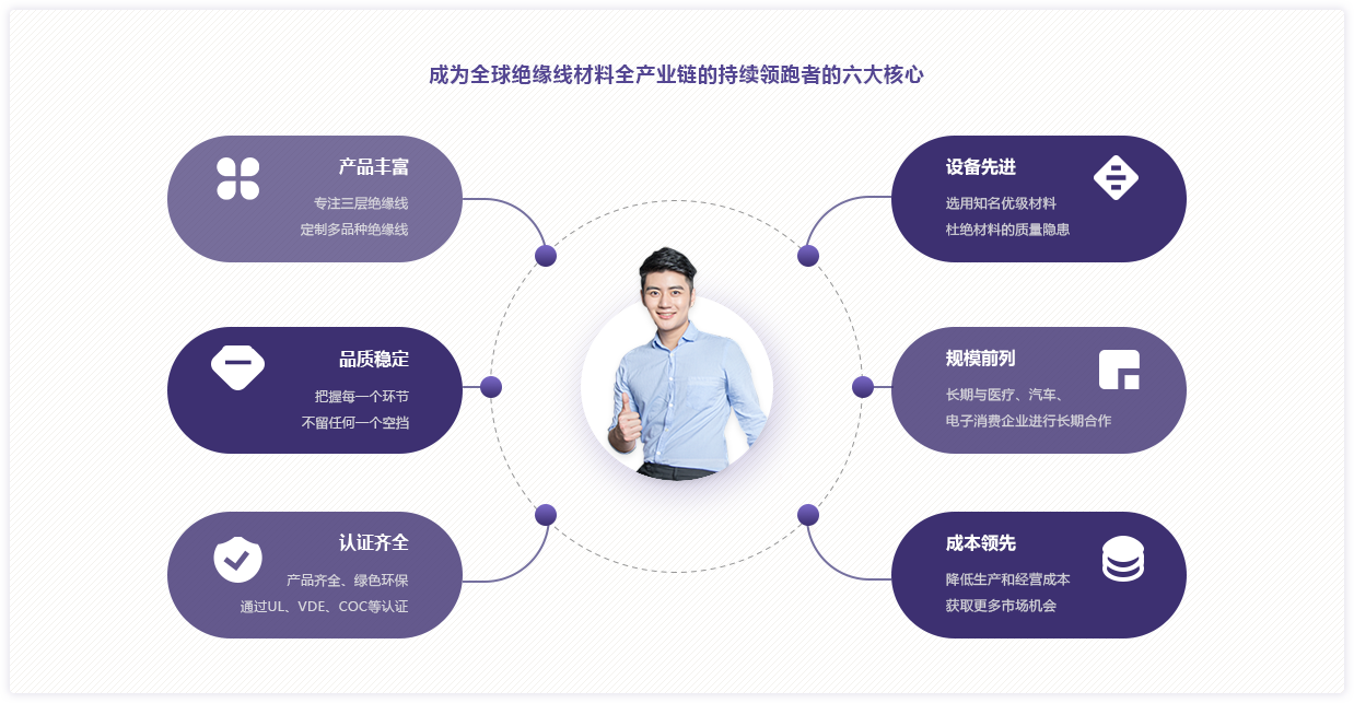 蘇州宇盛電子有限公司成立于2005年,是一家集研發、制造、銷售為一體的生產性企業,在國內絕緣線市場還未發展時,就開始從事多層絕緣線銷售研發制造?,F公司廠房面積7600平方米,員工100余人,目前有25條產線(多層絕緣線產線15條,多層繞包產線10條),產銷規模每月100 KKM, 擁有齊全的配套檢驗設備,規格齊全、綠色環保,并通過UL、VDE、CQC等認證。